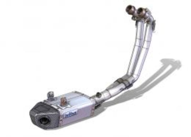 Lo scarico LeoVince Underbody, omologato con dB-killer estraibile, sostituisce interamente l’impianto di serie e garantisce una riduzione di peso di circa 3 Kg rispetto all’originale. Il silenziatore unitamente alle staffe di fissaggio ed i collettori, sono interamente realizzati in acciaio inox AISI 304. Il rivestimento esterno del silenziatore viene trattato in un impianto di sabbiatura ad inox: tale procedimento permette di ottenere un effetto Titanium Look.