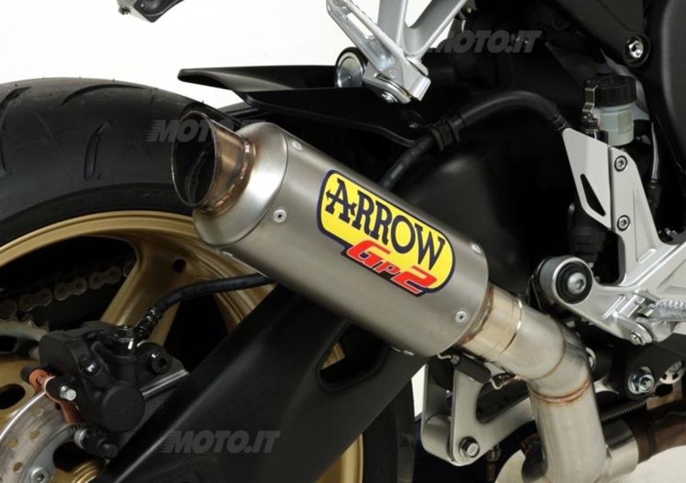 Leggerissimi (il silenziatore è tutto in titanio, compresa la fascetta di fissaggio al telaio), piccoli (il diametro del silenziatore è di 98mm), attirano l'attenzione (anche se, a colpo d'occhio, si nota solo la macchia di colore del logo ARROW-Gp2) e sono pure rumorosi (ma non tanto). Last but not least, le prestazioni sono molto interessanti.