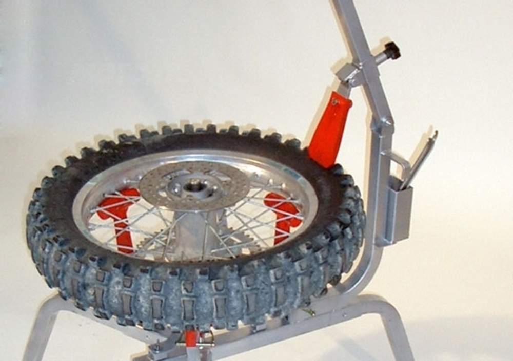 Questo rivoluzionario accessorio che può essere di ampio utilizzo sia alle officine che ai singoli piloti per il suo facile trasporto è adatto all’impiego di ruote a razzi o cerchi in lega con 3 o più razze e diametri da 10” a 21” con qualsiasi canale e perni ruota da 10 a 30 mm. Infiniti gli utilizzi: dal cross al motard, dai quad ai go-kart.