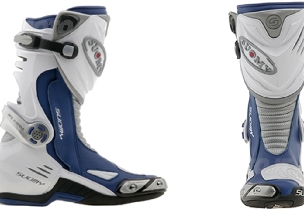 Finalmente Suomy può dire di vestire il motociclista dalla testa ai piedi! Presentato al Salone di Milano lo stivale va a completare la vasta gamma dei prodotti che Suomy produce da anni per i motociclisti: caschi, abbigliamento tecnico racing e da turismo, pantaloni, guanti, accessori per la persona e la moto. Gli stivali Suomy sono stati realizzati in tre diverse versioni: modello Extreme per l’uso in pista, modello Racing per i motociclisti esigenti "fuori pista" e modello Touring per coloro che amano fare lunghi viaggi e che, oltre alla sicurezza, richiedono comfort. Modello EXTREME: E’ un modello decisamente corsaiolo e molto tecnico, per un uso esasperato in pista. Tomaia in lorica, fodera traspirante ed imbottiture extra morbide. I rinforzi sono in poliuretano con un inserto in magnesio a protezione del tallone. Le coperture plastiche sono ad iniezione mentre la suola racing Suomy è in gomma antiscivolo a tripla densità. Slider in magnesio removibili e facilmente sostituibili. La chiusura, con zip e velcro, ha una leva in alluminio ed un meccanismo che ne permette la regolazione. La protezione della caviglia (SPS System – Safety Protection System) è in magnesio, il sottopiede è antibatterico ed intercambiabile. Prese d’aria ed intersuola in materiale termoplastico ad elevata flessibilità ed assorbimento urti completano lo stivale dal design decisamente accattivante. Colori disponibili: nero, rosso, blu e bianco.