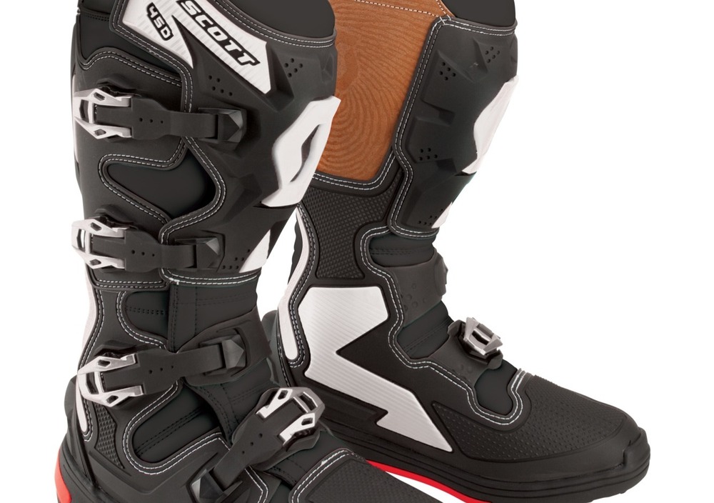 Lo stivale 450 ha un design da competizione, pelle di alta qualità e protezione in alluminio sulla tibia.