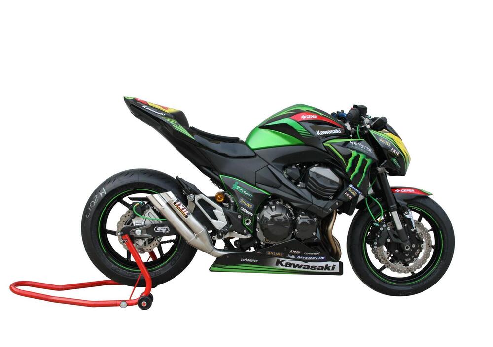 L’ultimo silenziatore della Ixil per la Kawasaki Z 800 2012/2013 è l’XOVS, fabbricato in alluminio anodizzato nero con fondello in alluminio fuso di colore nero e fissato con viti in acciaio. DB Killer estraibile e omologazione CE.