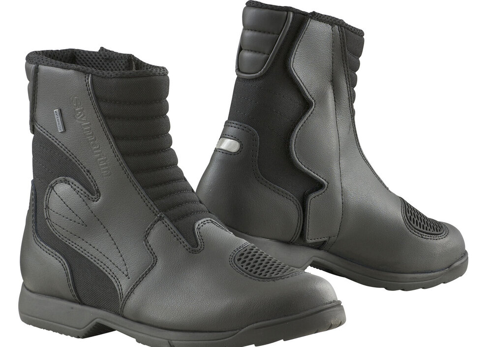 STONE appare come il più sobrio e versatile dei tre. La tomaia è un mix di pelle idrorepellente e cordura, le protezioni malleoni sono posizionate internamente e non manca il paracambio. La chiusura è con zip + velcro.