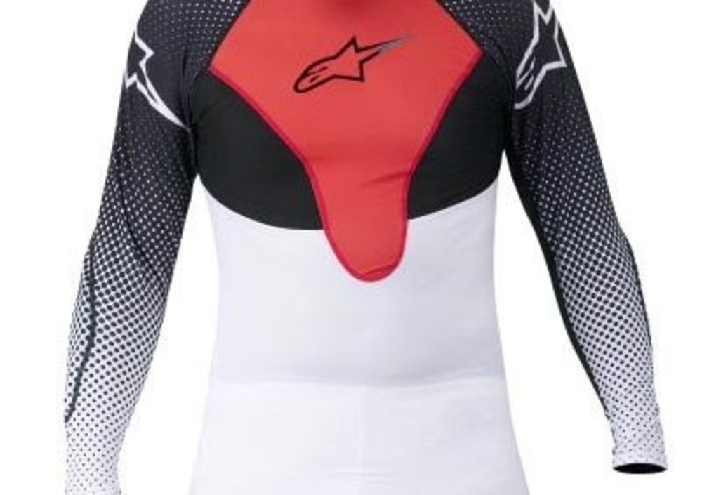 Questa maglia Alpinestars svolge lo stesso lavoro di quelle magliette termiche che solitamente utilizziamo per correre o per fare attività fisica. Comprime delicatamente i nostri muscoli ed allevia l'indolenzimento muscolare. E’ in poly-spandex traspirante e termoregolante, unito ad un tessuto traforato che garantisce ottima traspirabilità. Inoltre è dotata di protezioni in schiuma antiurto sui gomiti, appositamente progettate per rimanere in posizione e non girarsi né sfilarsi in caso di impatto. Non l’avevo mai utilizzata, ma da ora in avanti non affronterò più un lungo viaggio senza indossarla sotto la giacca. Una maglia leggera, protettiva e traspirante che costa Euro 59,95.
