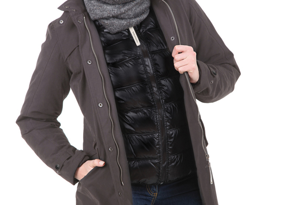 Tramite apposite predisposizioni il piumino è abbinabile a due trench imbottiti, disponibili naturalmente nelle stesse taglie, sia per lui sia per lei.