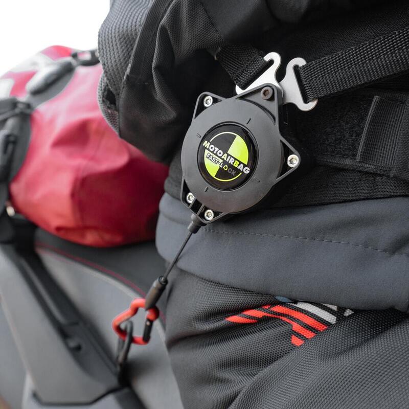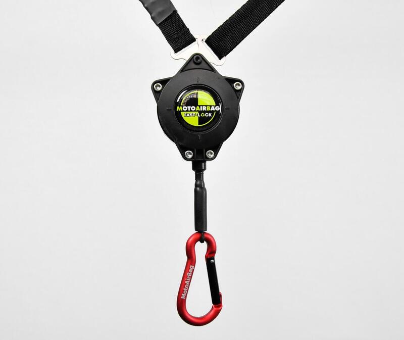 In posizione di riposo, FAST LOCK riavvolge completamente il cavo evitando intralci al motociclista. FAST LOCK è disponibile anche per i già clienti MotoAirbag, che possono aggiornare il proprio modello contattando direttamente il servizio di assistenza dal sito.