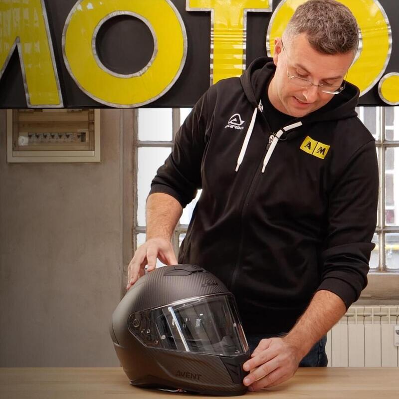 La calotta è realizzata in HPT (High Performance Terpolymer) non manca uno spoiler aerodinamico posteriore e la visiera è di tipo a sgancio rapido, compatibile con un Pinlock 70 antiappannante. Gli interni termoformati includono un deflettore paranaso e un sottogola. La ventilazione è affidata a prese d’aria sulla calotta e sulla mentoniera; la chiusura è di tipo micrometrico.