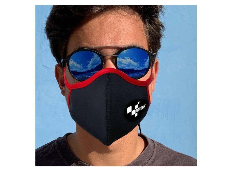 La maschera in morbida e traspirante lycra nera con il logo MotoGP è comoda, lavabile e riutilizzabile.