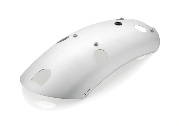 Non mancano i parafanghi in alluminio spazzolato e anodizzato. Coperchio serbatoio fluido freno e frizione e infine, immancabile, il tappo serbatoio benzina.