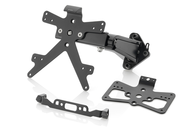 Porta targa Outside, abbinato al supporto frecce posteriori con catarifrangente integrato. Retrotreno affilato ed elegante.