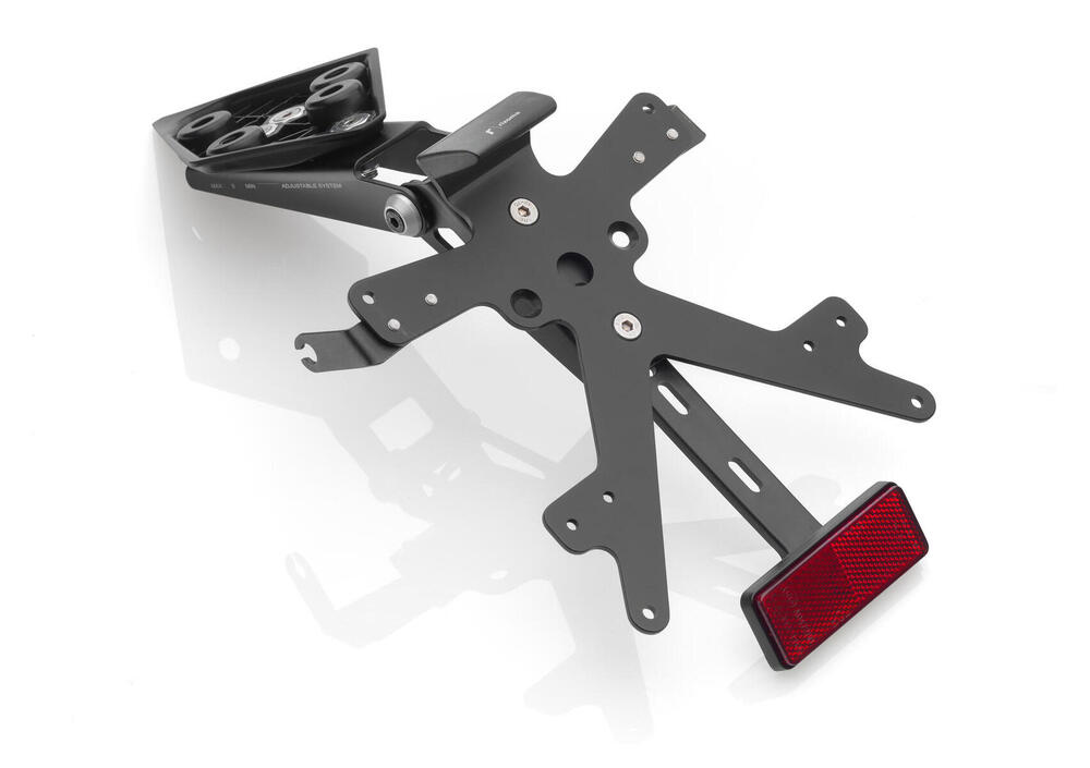 Protezioni motore ricavate dal pieno, dal design dedicato; specchi retrovisori con opzione per montaggio in posizione standard; indicatori di direzione e due configurazioni porta targa: Fox e Side Arm.