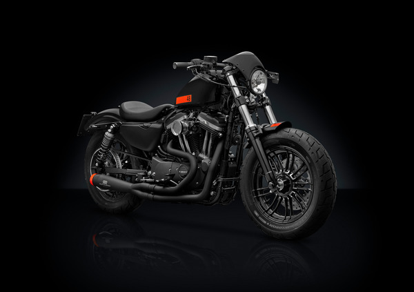 Per Harley, nella fattispecie la Forty-Eight 1200, abbiamo creato una collezione di 13 prodotti con un finishing prevalentemente sul nero satinato in contrasto con il nero lucido, con dei richiami di arancione che sono iconici della casa.