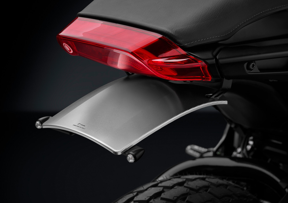 Infine, la parte posteriore è stata alleggerita grazie al parafango dalle dimensioni ridotte, pensato per essere abbinato anche ai nuovi indicatori di direzione Light Unit, anch’essi piccoli e compatti, e al porta targa dedicato che prevede la soluzione di tipo outside per la massima pulizia visiva.