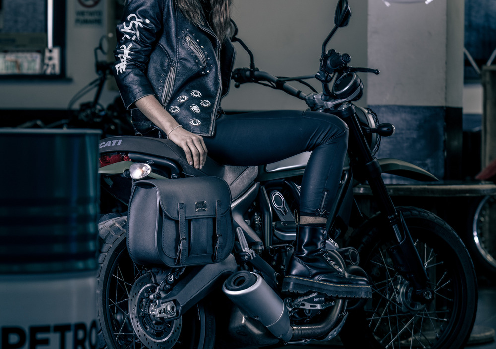 Portapenne, ad esempio, portachiavi, ma soprattutto zaini da viaggio, borsoni, maxi shopper dallo stile rock, trolley, borse da lavoro, e soprattutto quel che interessa a noi: accessori per la moto.