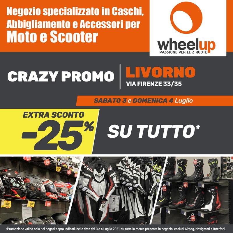 Durante il weekend di inaugurazione, Wheelup proporrà una forte promozione con sconti del 25% su tutti i prodotti in esposizione (airbag, elettronica e merce già in sconto esclusi).