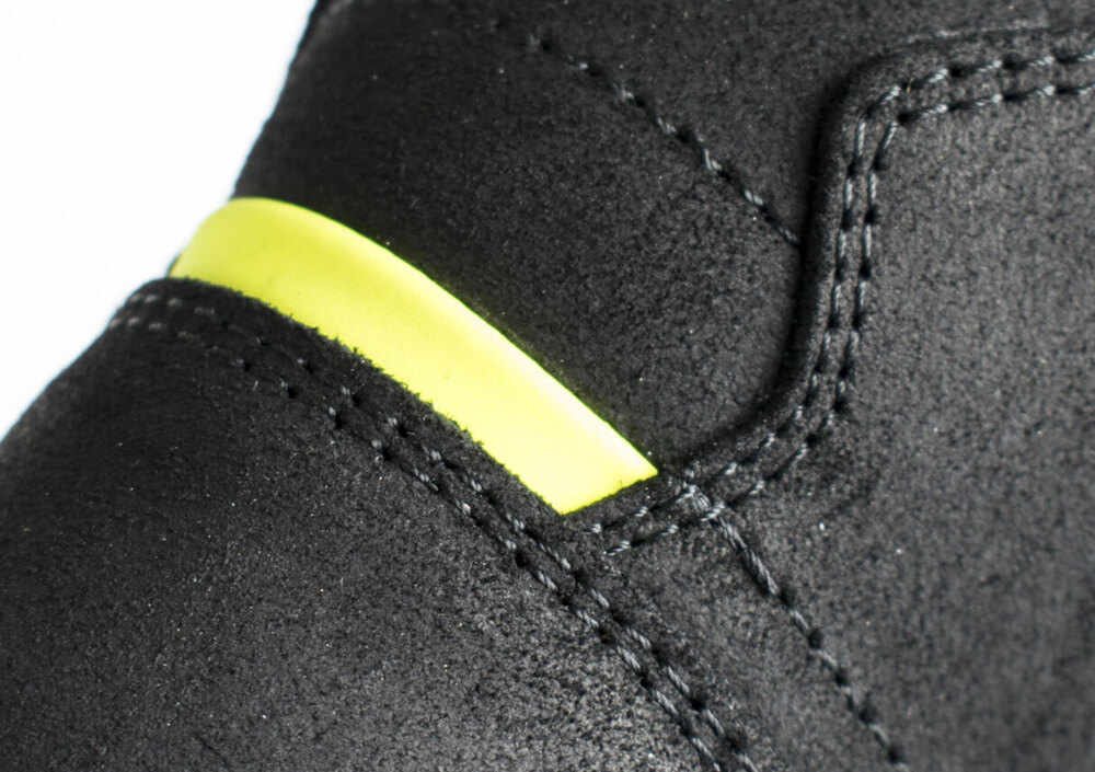 Più in generale questa sneaker tecnica si presenta con una tomaia in pelle ingrassata trattata idrorepellente; internamente offre una membrana impermeabile e traspirante e protezioni in PU sui malleoli. Non mancano rinforzi su punti sensibili come ad esempio la zona di contatto con la leva cambio. Il modello è certificato livello 2 (EN 13634:2010).