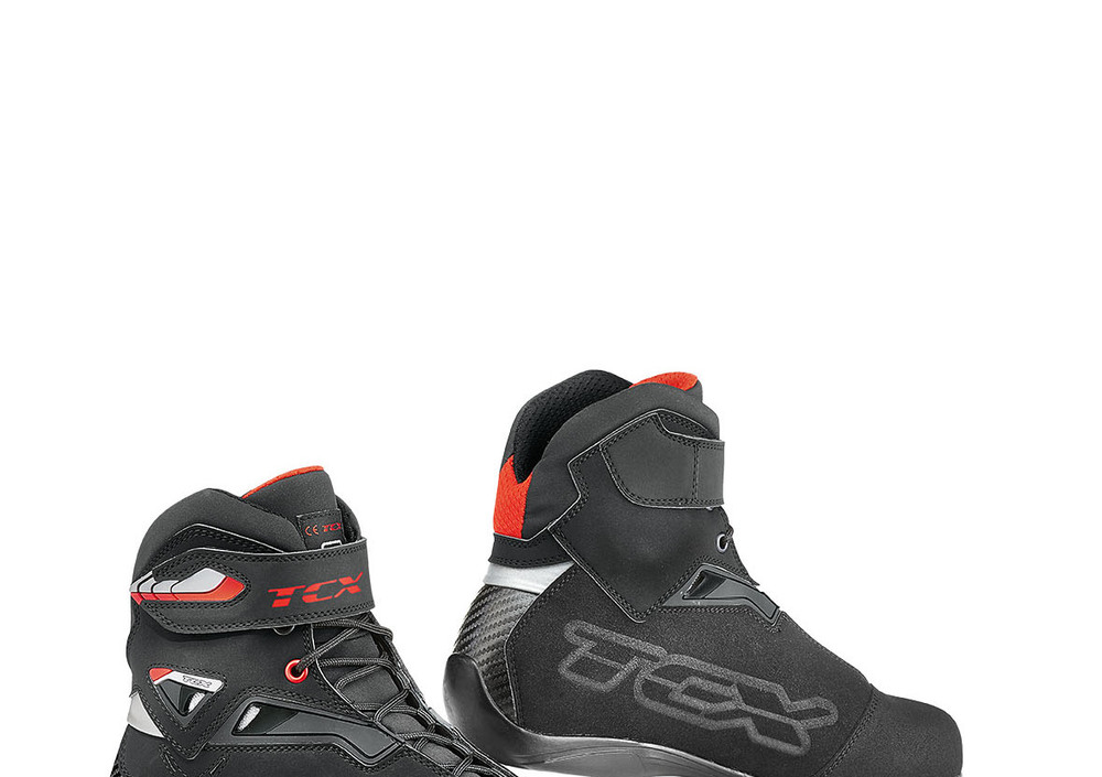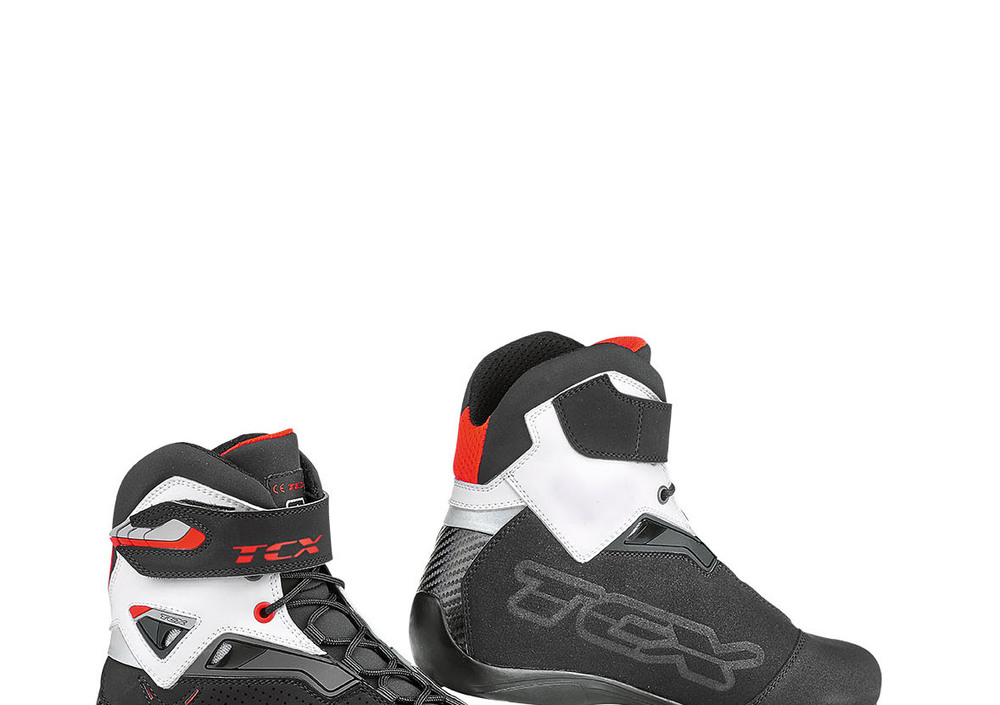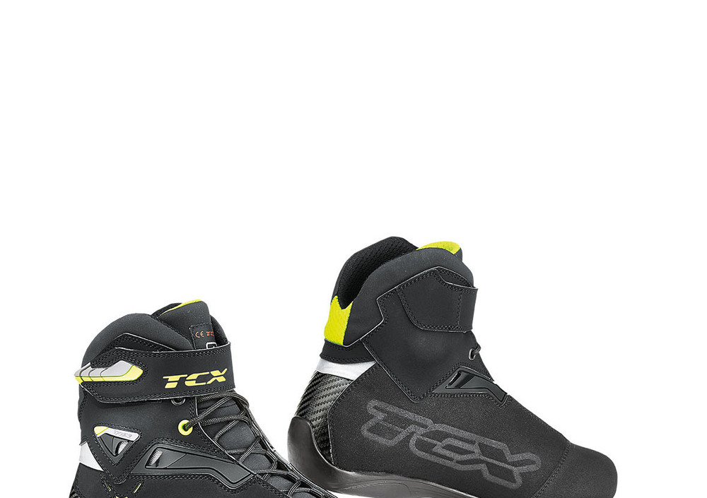 La calzatura RUSH è il risultato di un attento lavoro sulla cura dei dettagli, svolto da TCX per realizzare un prodotto dal look sportivo, in grado di offrire comfort e protezione anche in caso di uso prolungato. In questo modello la costruzione della tomaia prevede l’utilizzo di diversi materiali: dalla microfibra opaca con effetto soft touch, alla pelle scamosciata che agevola il grip sul telaio della moto, fino ad arrivare al tessuto mesh impiegato per rendere il collarino interno morbido e confortevole. La fodera interna è in tessuto traspirante e la tomaia è traforata, quindi particolarmente adatta ad un uso nel periodo primavera-estate. La particolare struttura è arricchita dall’inserimento di prese d’aria nella zona della caviglia, e da numerose micro-iniezioni che donano alla calzatura un accento marcatamente sportivo. La chiusura avviene attraverso un sistema di allacciatura classico e si completa con una banda in Velcro con micro-iniezioni che facilitano l’apertura. Le protezioni sono posizionate in corrispondenza della punta, dei malleoli e del tallone.