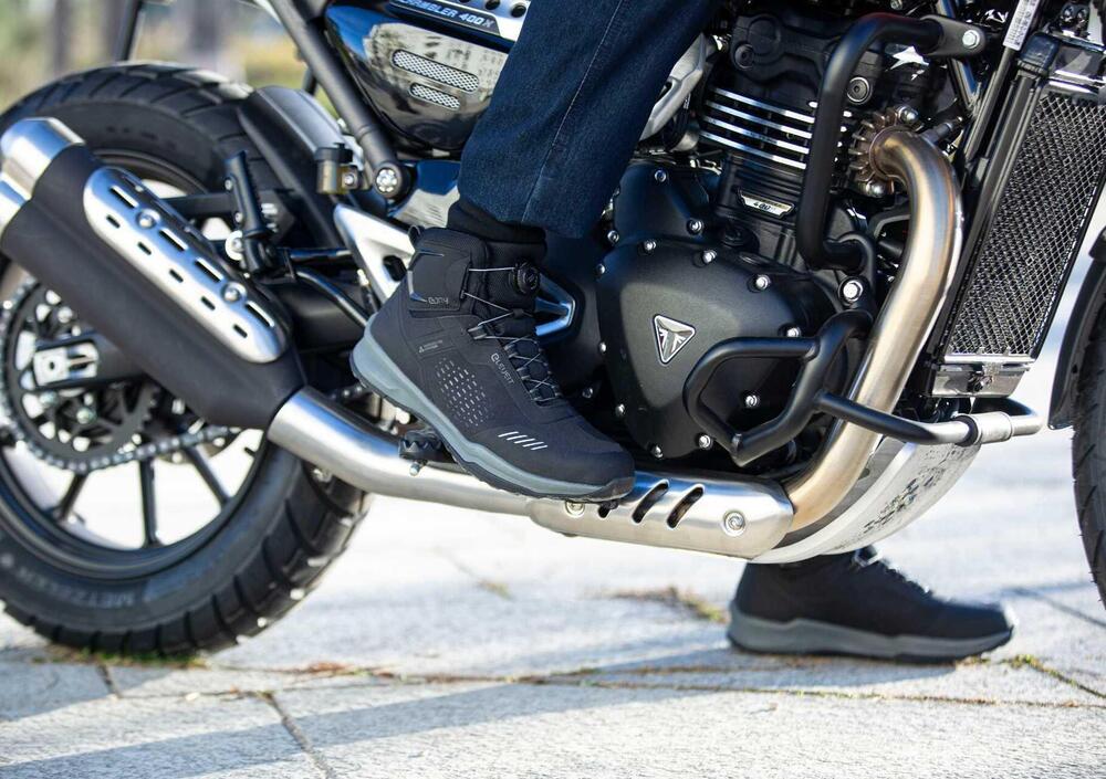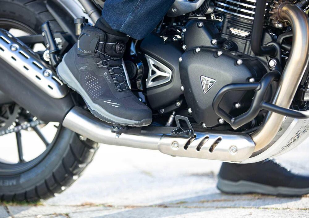 Inoltre, il sistema Fitgo elimina il rischio che la leva del cambio o del freno posteriore si impigli nei lacci, aumentando così la sicurezza complessiva del motociclista.