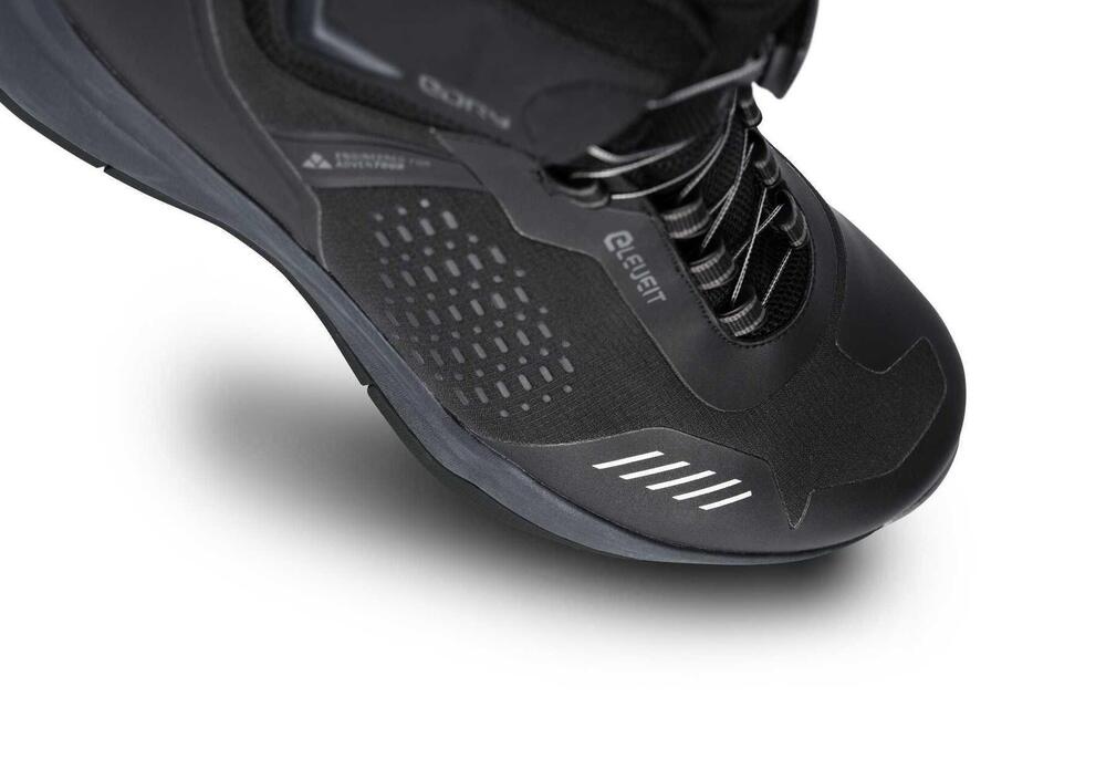 Eleveit non ha trascurato la sicurezza, dotando la Discover WP di rinforzi mirati nelle zone più esposte a impatti e usura. I punti critici come il tallone, la punta e il malleolo sono protetti da inserti strategici che offrono supporto extra. Inoltre, la parte a contatto con la leva del cambio e l’esterno della scarpa sono rinforzati con inserti in poliuretano, applicati tramite saldatura, per garantire una protezione ottimale contro le sollecitazioni e l’usura quotidiana.