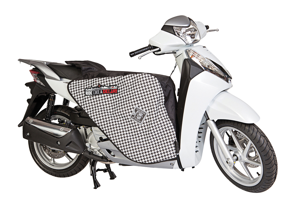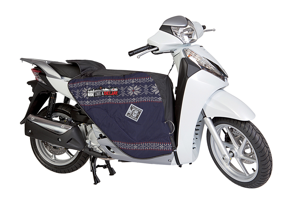 Gli scud-à-porter DEEJAY, prodotti da Tucano Urbano, sono compatibili con tutti i modelli di scooter a pedana piatta e sono dotati di montaggio semplificato a due punti d'ancoraggio. L’esterno è realizzato in nylon pesante a tenuta stagna con cuciture nastrate per proteggere i centauri dalle condizioni atmosferiche più avverse, mentre la membrana interna 100% impermeabile e l’imbottitura termica in ecopelliccia removibile assicurano massima difesa contro le basse temperature. Infine, il pratico anello antifurto permette di lasciare la moto parcheggiata in totale sicurezza.