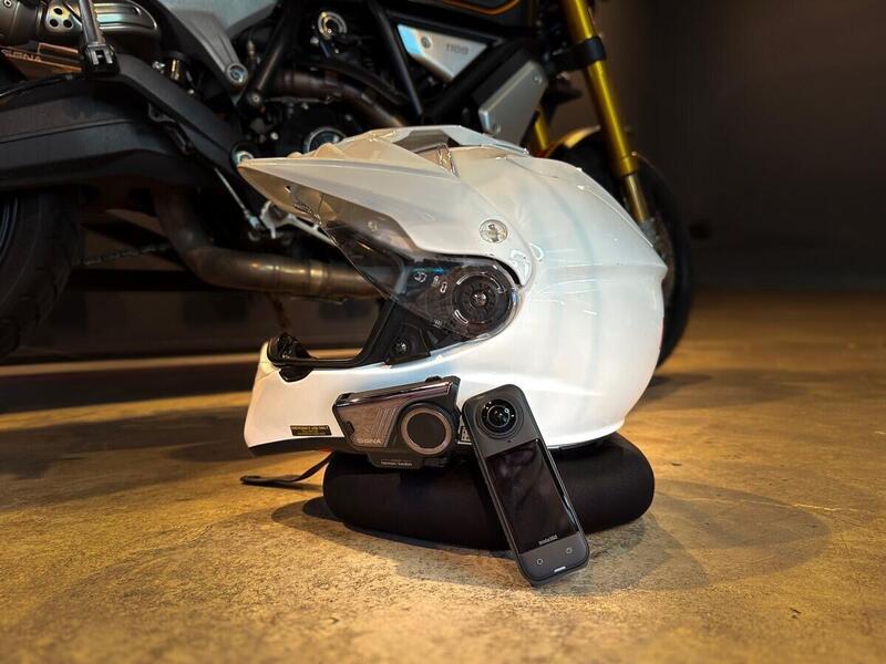 Con l’Insta360 X5, l’integrazione va ancora oltre: i pulsanti del SENA 60S permettono di controllare direttamente la videocamera. Accendere o spegnere, avviare o interrompere una registrazione, passare dalla modalità foto a quella video, tutto si gestisce dall’interfono, senza distogliere lo sguardo dalla strada e distrarsi.