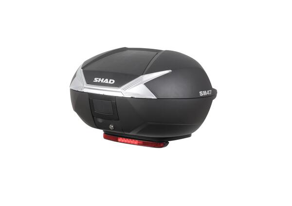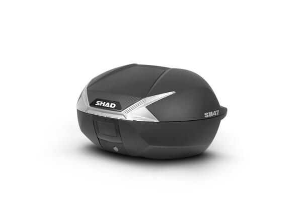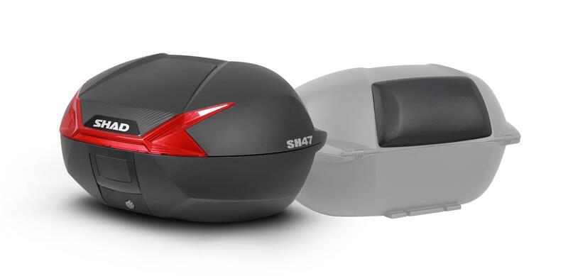 Come per tutti i prodotti studiati da SHAD, oltre alla praticità e alla forma aerodinamica, SH47 esprime un design moderno ed elegante in cui evidenziano la cover carbon look, di serie, e il catadiottro centrale disponibile in due varianti colori: rosso (SH47 Red) e bianco (SH47 SH47 integra l'Handle Lock System, un doppio sistema di chiusura con una maniglia di trasporto integrata.
