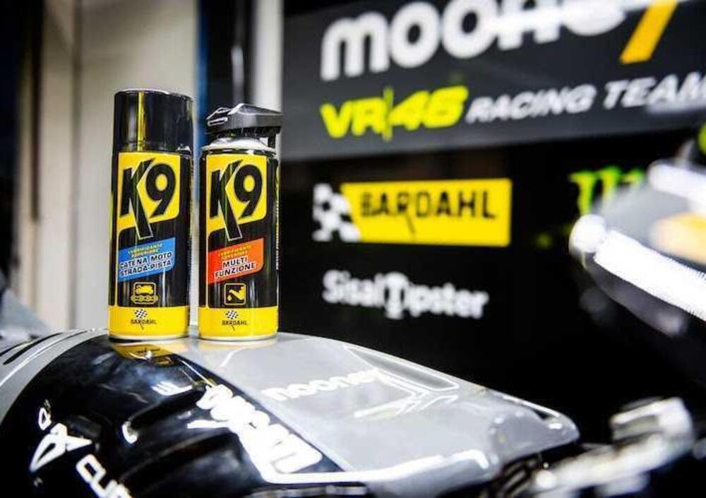 Alla gamma di lubrificanti e additivi di qualità superiore, Bardahl mette anche a disposizione del Mooney VR46 Racing Team, anche i prodotti K9 Bardahl (www.k9line.it), la nuova e completa linea di prodotti aerosol per e destinata alla cura, manutenzione e pulizia della moto, della bici, così come a tutti gli appassionati del “fai da te”.