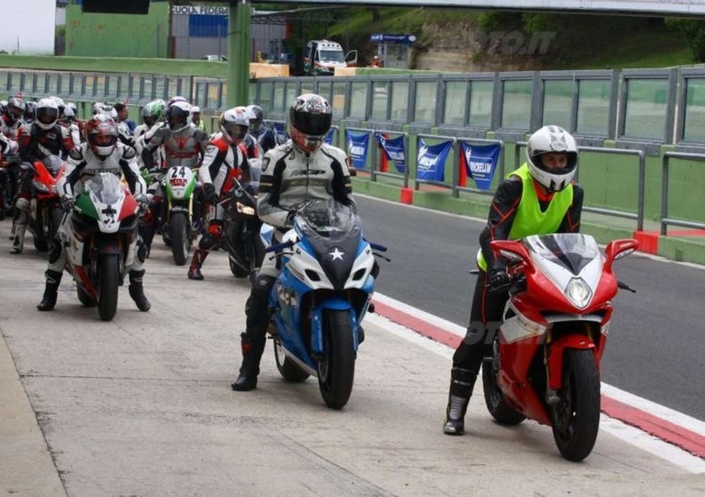I buoni per tre turni gratuiti di prove libere distribuiti dai rivenditori più orientati al “race” della grande azienda francese hanno sedotto una gamma molto ampia di utenti, dall’agonista esperto e smaliziato allo stradista che ha usato la stessa moto per compiere il percorso da casa al circuito e poi per misurarsi nello spettacolare anello.