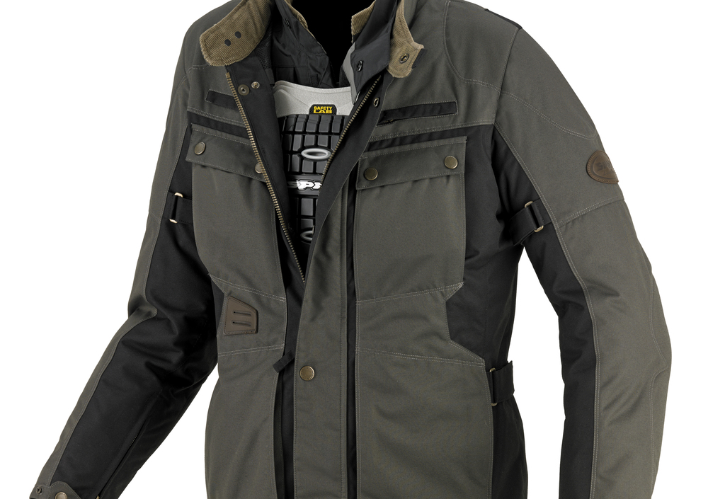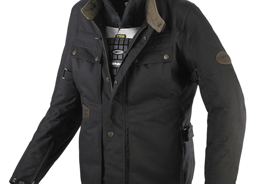 Caratterizzata da un taglio corto ed asciutto, è confezionata con un elegante poliestere da 250 gr, che unisce le caratteristiche della resistenza richieste dal mondo moto a quelle dell’aspetto cotoniero, icona del mondo classico. I colori disponibili sono: nero, antracite/nero, avorio/nero. Le taglie vanno dalla M alla 3XL e il prezzo al pubblico è di 379,90 Euro.