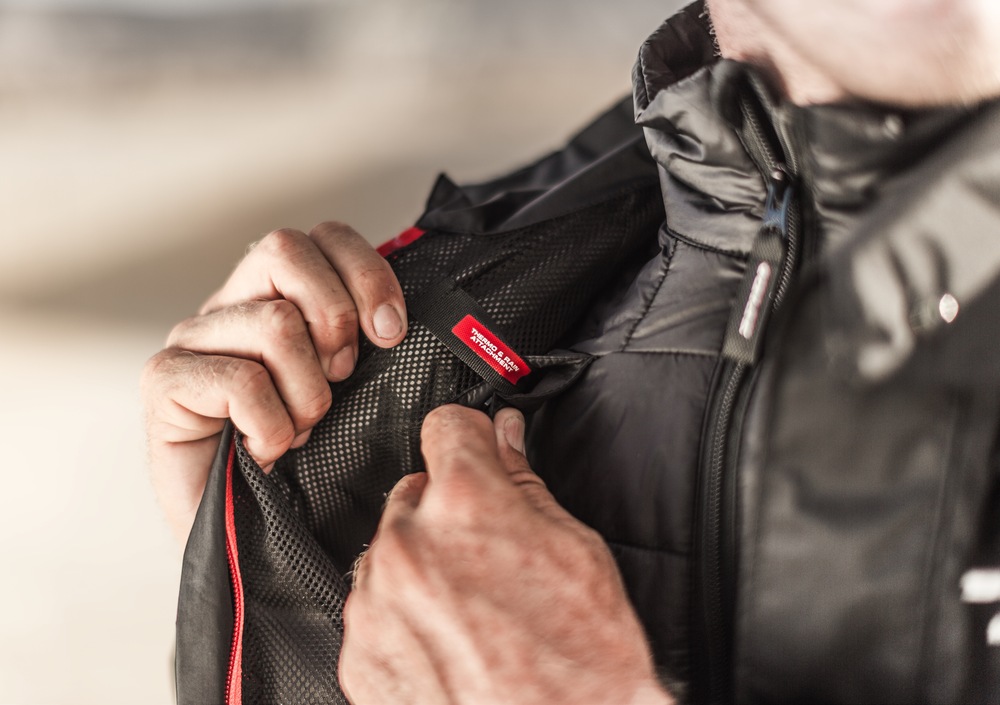 L'interno Thermo Liner, anch'esso removibile, offre invece caldo e comfort durante le uscite più fredde e può essere agganciato o al guscio esterno o alla membrana H2Out stessa, oppure essere indossato indipendentemente come capo da tempo libero.