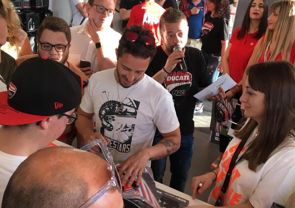 DesmoDovi, disponibile come sempre, ha firmato autografi su poster, caschi, tute e moto, e si è prestato a foto e chiacchiere con i suoi fan.