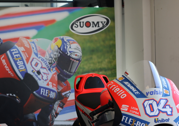I presenti hanno potuto testare l'integrale Suomy SR Sport - proprio quello che che il Dovi indossa durante le gare; ma anche il nuovo arrivo della gamma sport touring: lo SpeedStar, rigorosamente "replica Dovizioso".