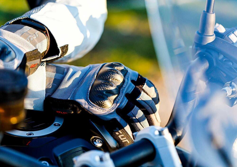 La pelle bovina, spesso presente sul palmo dei guanti, diventa protagonista, accompagnata da protezioni nocche in carbonio che donano grinta a un look già molto sportivo e contribuiscono ad aumentare la protezione delle mani.