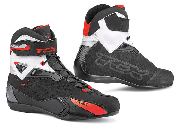 In questo modello la costruzione della tomaia prevede l’utilizzo di diversi materiali: dalla microfibra opaca con effetto soft touch, alla pelle scamosciata che agevola il grip sul telaio della moto, fino ad arrivare al tessuto mesh impiegato per rendere il collarino interno più confortevole.
