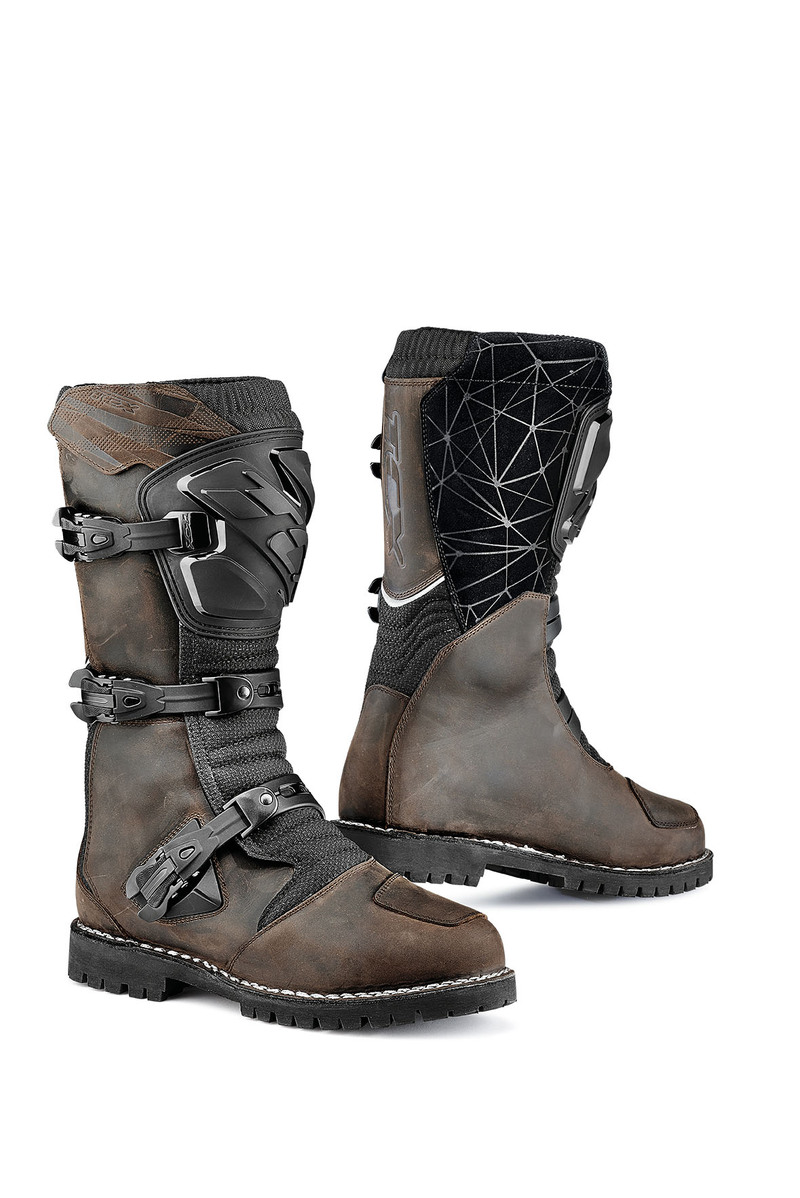 Il sistema di chiusura si compone di tre leve in alluminio, resistenti all’usura, intercambiabili e dal design ergonomico, che ne facilita l’apertura/chiusura. La suola con battistrada tassellato, disegnato per garantire la massima aderenza su tutte le superfici, completa la costruzione del DRIFTER WATERPROOF, un prodotto che, grazie a spiccate doti di impermeabilità e versatilità, è ideale per un utilizzo on/off, su strada e sterrato. Lo stivale è certificato CE secondo la nuova normativa EN 13634:2015.