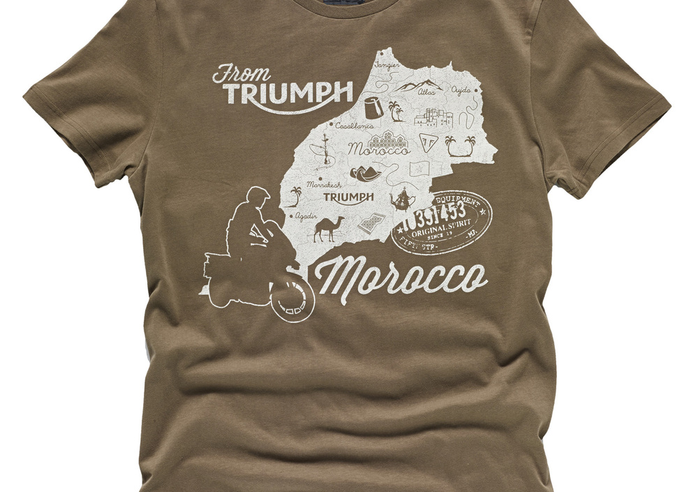 Per un look da vero viaggiatore Triumph propone la nuova collezione Adventure: chinos shorts color sabbia e due nuovissime t-shirt dedicate alle coordinate di Hinckley e al Marocco, che non faranno perdere traccia della vostra passione nemmeno in vacanza.