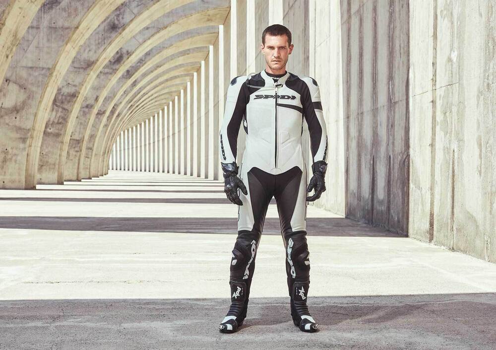 Le pelli della tuta Race Warrior Perforated Pro di Spidi sono conciate in Italia e caratterizzate da perforazione localizzata, per favorire la circolazione dell'aria mantenendo intatte le caratteristiche di resistenza vicino alle cuciture.