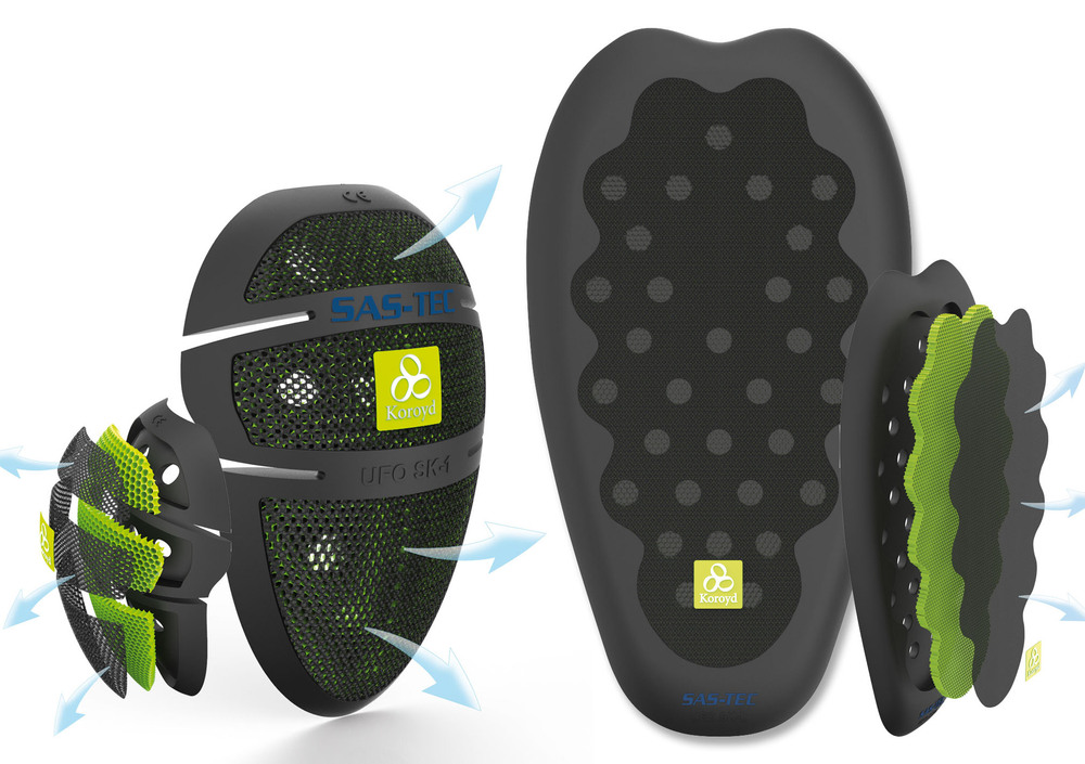 Progettata e prodotta interamente in Italia, è dotata di protezioni interne su torace, schiena, spalle e gomiti realizzate combinando gli innovativi materiali SAS-TEC, schiuma viscoelastica poliuretanica dal comportamento adattivo di smorzamento dell’energia da impatto, e Koroyd che si evidenzia per l’alto assorbimento degli urti e l’elevata traspirazione.