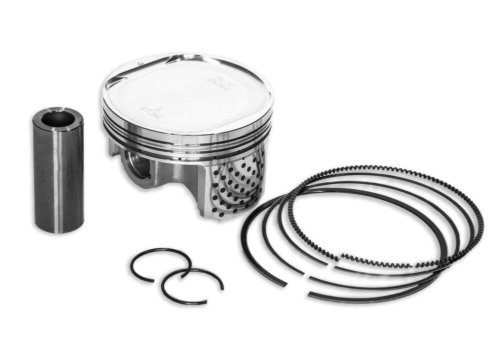 Questi pistoni da competizione, studiati per un esclusivo uso in pista, sono proposti nelle versioni Replica e High Compression completi di segmenti, spinotto e anellini fermo spinotto. Fra i vantaggi offerti, un peso ai limiti minimi della categoria e un rapporto di compressione maggiorato che aumenta sensibilmente le prestazioni del propulsore mantenendone inalterata l’affidabilità.