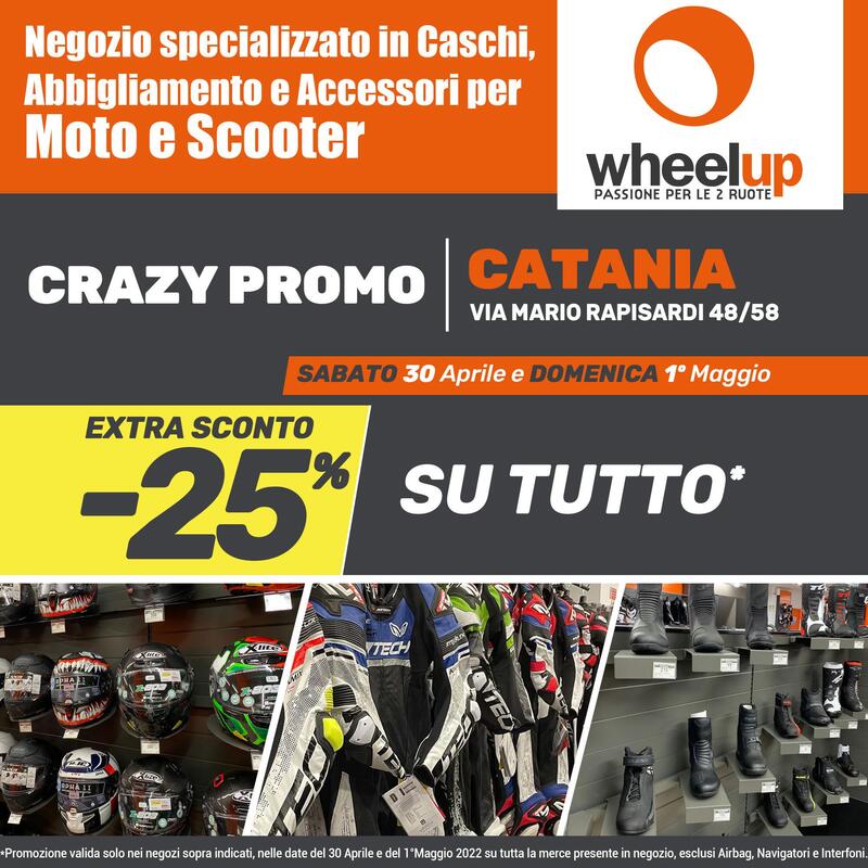 Prima inaugurazione del 2022, secondo punto vendita in Sicilia: Wheelup, la catena di negozi di abbigliamento e accessori dedicati agli amanti delle due ruote, riprende la campagna di espansione in Italia. Ad approfittare del nuovo punto vendita saranno ancora una volta i motociclisti siciliani: il 40esimo negozio Wheelup sarà infatti situato a Catania in Via Mario Rapisardi 48/58 e offrirà a tutti i motociclisti un’ampia selezione di prodotti di abbigliamento, accessori e caschi.