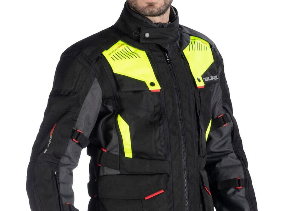 Il comparto sicurezza mette in campo protezioni omologate su spalle e gomiti di Livello 2, la possibilità di inserire un paraschiena (consigliamo il modello Alike Esatech Evo Liv.2- 7205/7206) e di utilizzare un kit di Customized Panels ad alta visibilità (da acquistare a parte), cambiando così anche il look dell’intero capo.