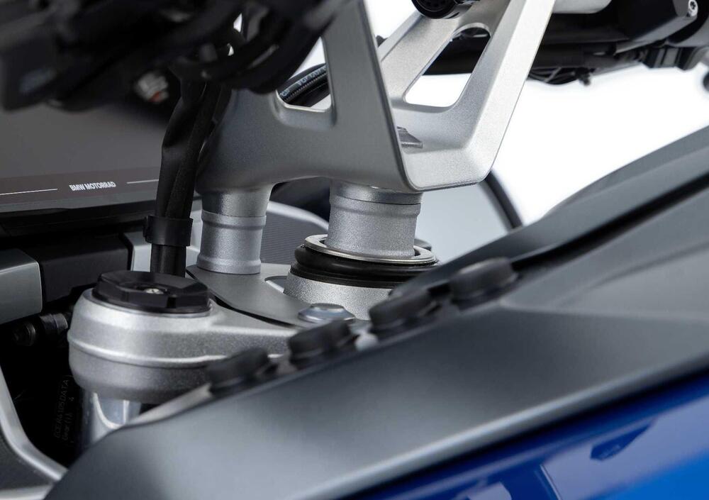 Il ponte manubrio presenta due punti di fissaggio definiti con precisione: nella parte superiore del cannotto di sterzo e, più avanti, su una lamiera sagomata collegata alla sospensione Telelever.