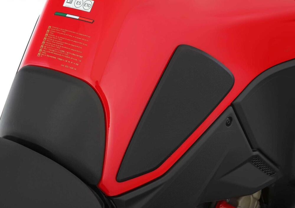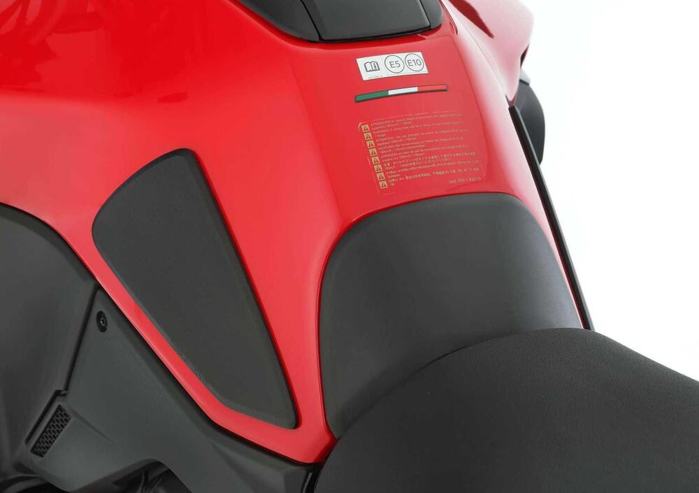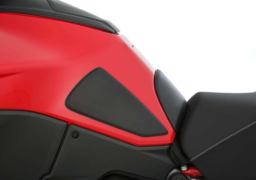I tre pad proteggono da graffi, danni e abrasioni in tutti i punti in cui si viene normalmente in contatto con il serbatoio. Le protezioni ottimizzano la postura e la posizione del ginocchio e garantiscono una migliore aderenza con la moto. Tutto questo aumenta il feeling con la moto arricchendo l'esperienza e il piacere di guida. I pad sono autoadesivi e realizzati in plastica di qualità, antiurto, leggermente abrasiva e antiscivolo di colore nero.