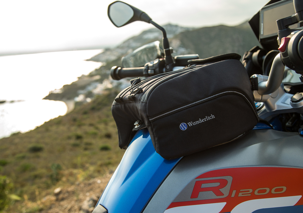La borsa Wunderlich ha una capienza di10 litri, non intererisce con la visibilità della strumentazione e non intralcia i movimenti del guidatore.