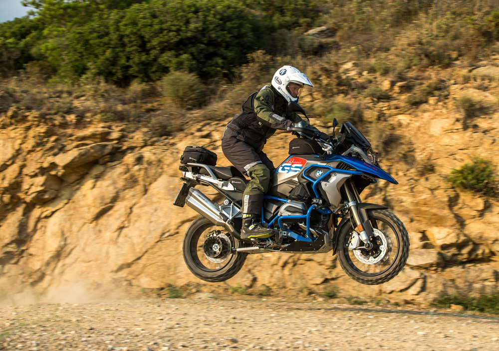 Il pilota viene coccolato dal plexiglass ERGO Marathon II, pensato specificamente per allungare l’autonomia della BMW e disponibile in versione chiara o fumé. Per migliorare l’ergonomia per i più alti nella guida in piedi è anche possibile adottare un riser che alza il manubrio di 4 cm.