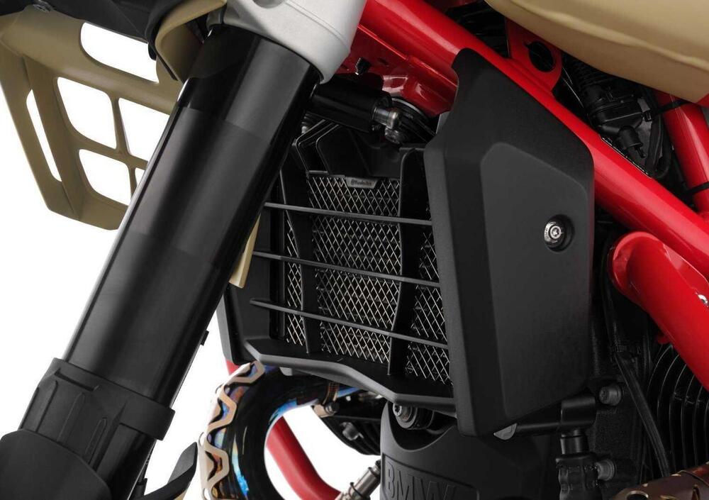 Mantenere l'equilibrio termico della propria BMW R 12 G/S è un compito fondamentale, specialmente per i motori raffreddati ad aria e olio dove il corretto funzionamento del radiatore è vitale. Purtroppo, il pacco radiante è costantemente esposto a rischi: quando si sporca, si ostruisce o subisce l'urto di materiali abrasivi, la capacità di raffreddamento può ridursi sensibilmente. Nei casi più critici, l'impatto con un corpo estraneo può causare danni tali da costringere a interrompere la marcia. La protezione firmata Wunderlich affronta il problema con una griglia a maglia fine in acciaio inox, studiata per intercettare le impurità più grossolane e difendere le delicate alette del radiatore senza però ostacolare il passaggio dell'aria.