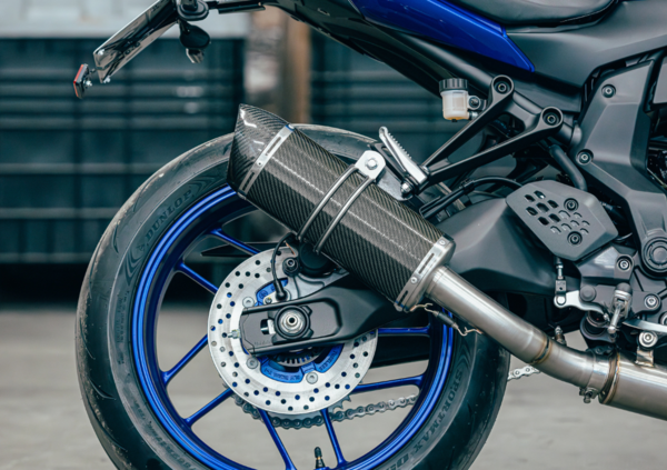Ogni silenziatore Roadsitalia è stato realizzato con materiali di alta qualità, come titanio o titanio nero o carbonio per garantire un ottimo equilibrio tra resistenza, leggerezza e stile. La riduzione del peso complessivo incide positivamente sull’agilità e sul comportamento dinamico della moto, mentre la nuova geometria interna del silenziatore ottimizza il flusso dei gas di scarico, migliorando la risposta del motore ai medi regimi e donando un sound più pieno e profondo, in linea con l’anima “Dark Side of Japan” che contraddistingue la famiglia MT.