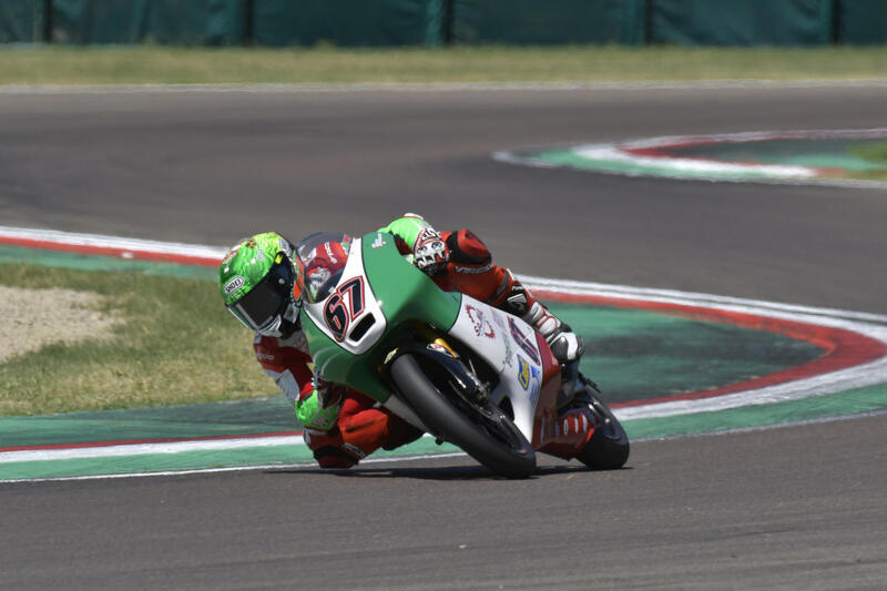 Nella categoria delle giovani promesse vincono Alberto Surra e Elia Bartolini, ma il protagonista assoluto è stato Omar Bonoli con la BeOn, moto laboratorio in un progetto voluto dalla Federazione, che vede giustamente nella moto spagnola il probabile futuro di questa categoria. Il talentuoso Bonoli corre fuori classifica ed è quindi “trasparente” ai fini della classifica di gara”. Nella gara di sabato ha tagliato per primo il traguardo, ma a vincere è stato Surra, vera rivelazione di questa stagione. Dietro al giovanissimo pilota del team Minimoto si sono classificati Nicola Carraro del team RGR TM Racing Factory di Davide Giugliano e Lorenzo Bartalesi dello Sky VR46 Junior team. Come sempre avviene in Moto3 è stata una gara piena di colpi di scena, tra i quali la caduta del leader della classifica Kevin Zannoni e lo strike dell’olandese Veijer che con una staccata assurda nell’ultima e decisiva chicane ha travolto il malcapitato Nicholas Spinelli, bravo a rialzarsi e a spingere sin sulla linea del traguardo la sua moto, terminando al decimo posto. Domenica è stata la prima volta di Elia Bartolini, il pilota dello Sky VR46 ha però non sempre riesce a mettere a mettere a frutto, tanto da aver terminato ben 4 delle sei gare sino ad ora disputate con zero punti. In gara2 però è stato perfetto. In testa dal primo all’ultimo giro, Elia non ha dato scampo ai propri avversari ed ha vinto con largo margine davanti Spinelli e Surra. Quarto posto per Zannoni, nel suo peggior weekend stagionale. Quinto l’australiano Kelso.