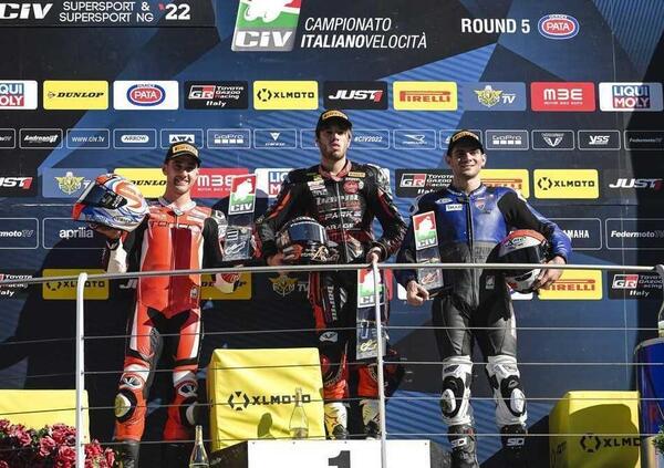 Le loro cadute hanno reso più facile la vittoria di Randy Krummenacher, che ha portato la Yamaha sul gradino più alto del podio. La Moto3, senza il leader Nicola Carraro impegnato nel mondiale, parla spagnolo con Vicente Perez Selfa, mentre nella Supersport NG da registrare la prima vittoria, non solo in Italia, ma in Europa, di una Ducati V2. Un vero trionfo per la casa di Borgo Panigale che ha monopolizzato il podio e piazzato quattro moto nelle prime cinque posizioni.