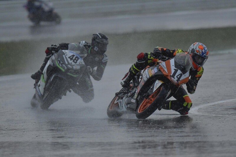 Domenica, a complicare il tutto ci si è messa anche la pioggia, che è caduta ad intermittenza. La pista inizialmente bagnata si stava asciugando, quando un altro scroscio di pioggia è tornata a bagnarla. Dopo una gara nella quale non sono mancati sorpassi millimetrici, contatti e cadute (tra le quali quelle di Bonoli e Boncinelli ed un highside di Cararro), nei giri finali sono rimasti in tre a contendersi la vittoria: Lorenzo Bartalesi, Spinelli e Leonardo Taccini. Il pilota del team Sky VR46 tagliava per primo il traguardo, ma veniva penalizzato di 5 secondi per aver effettuato un sorpasso in regime di bandiere gialle. La vittoria andava quindi a Spinelli, seguito da Taccini e dallo stesso Bartalesi, al quale restava la consolazione del podio. Quarto posto per l’australiano Joel Kelso, e quinto per Raffaele Fusco. Gara da dimenticare per Zannoni, che ha chiuso undicesimo dopo che nei primi giri era stato anche in sedicesima posizione, alle prese con problemi di assetto. I problemi di Zannoni hanno sconvolto la classifica, che vede ora al comando Spinelli con 134 punti, seguito da Zannoni con 121. A 20 punti c’è Surra, seguito da Veijer e Carraro, che sono rispettivamente a 55 e 64 punti dalla vetta.